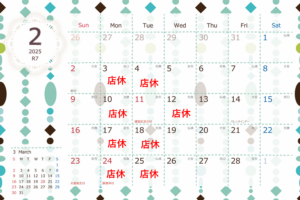当店は通常火曜と水曜がお休みですが、2/11水は、祝日のため営業いたします。