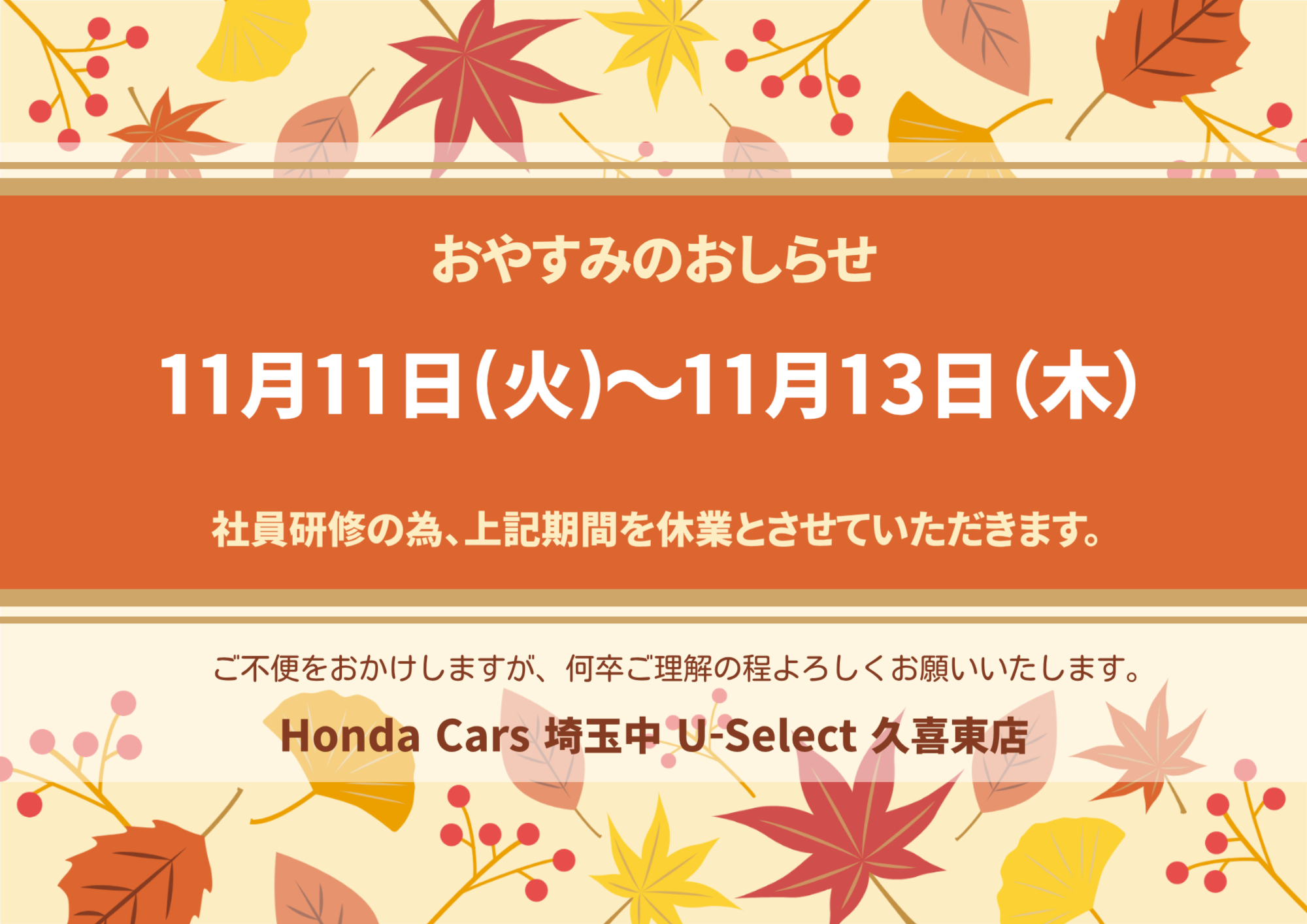 11月11日(火)〜11月13日(木)は社内研修の為となりますのでご了承ください。