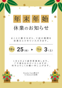 年末年始お休み