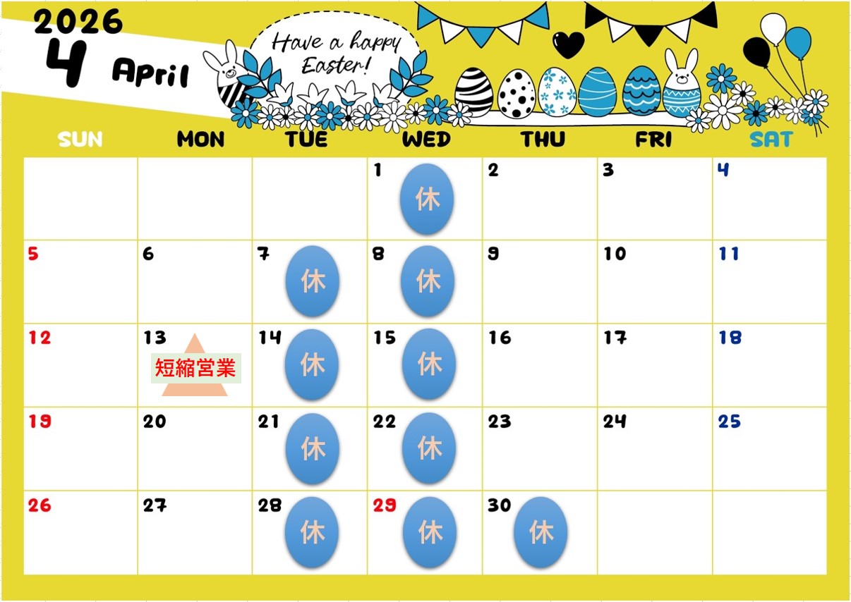 4月店休日のお知らせ