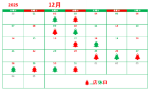 第1週と第2週は通常通り 火曜水曜 お休みとなりますが、
