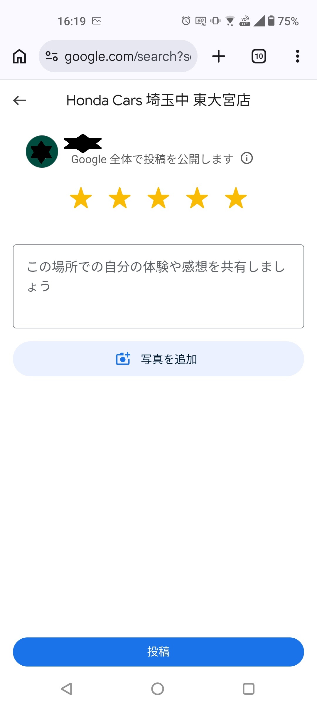 この場所での自分の体験や感想を共有しましょう の部分にコメントを入力して