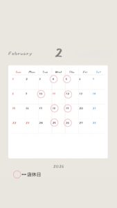 今回は2月の店休日のご案内です!