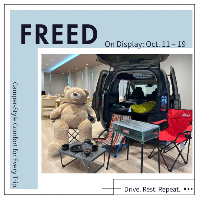 本日から期間限定で車中泊仕様のフリードを展示します🎵