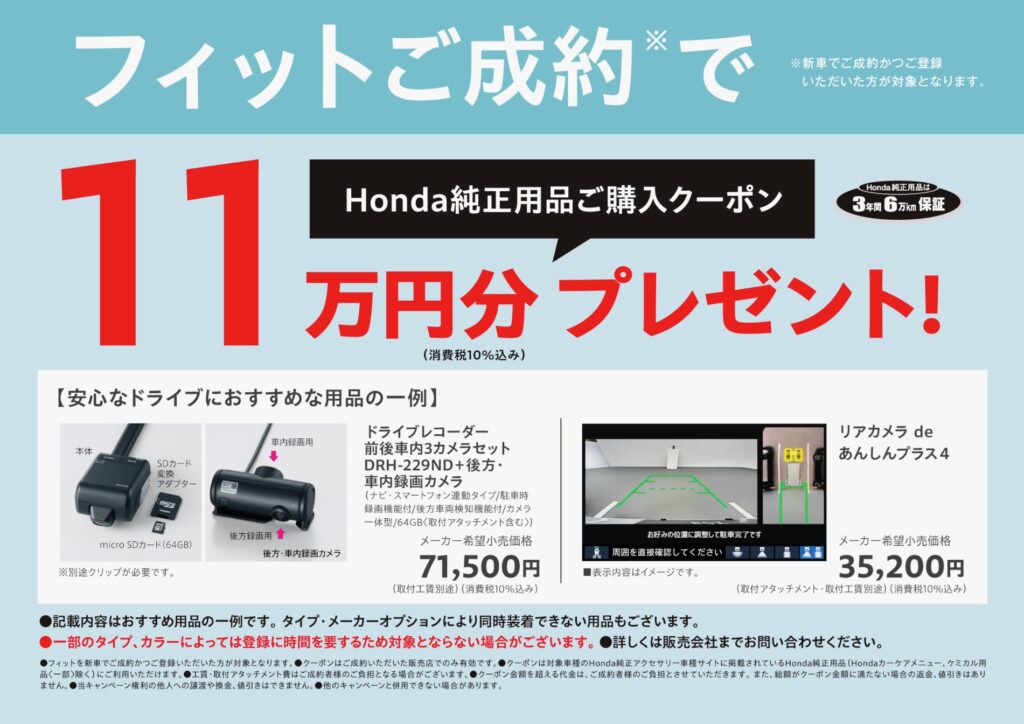 フィットご成約で11万円分クーポン🎁✨