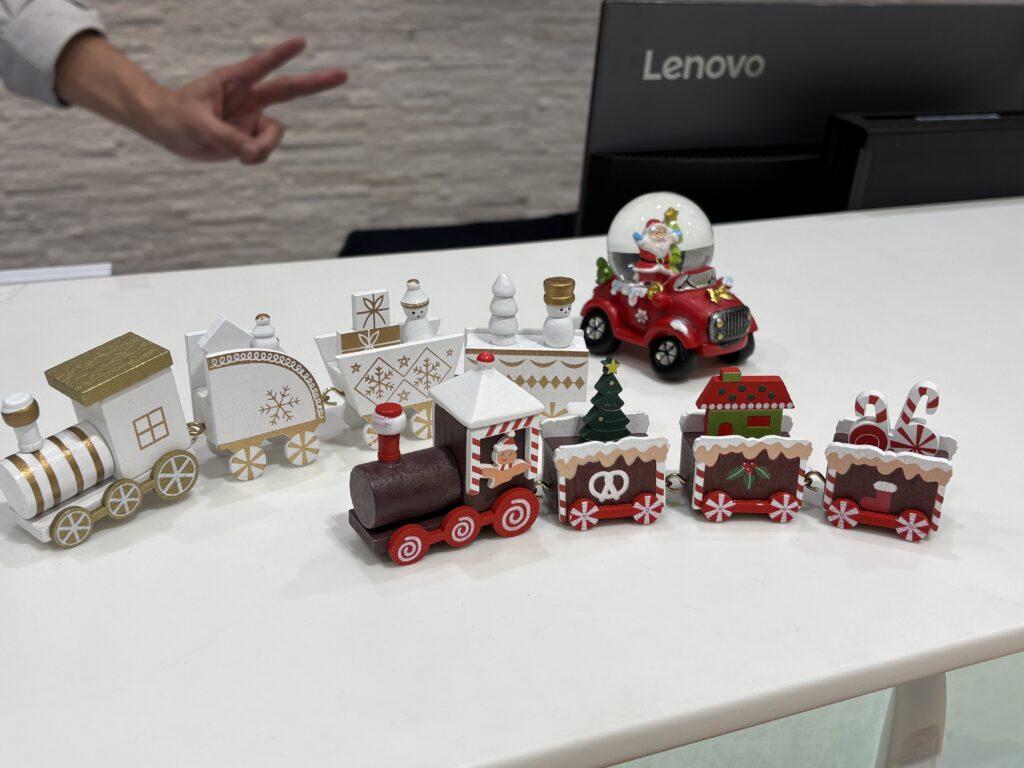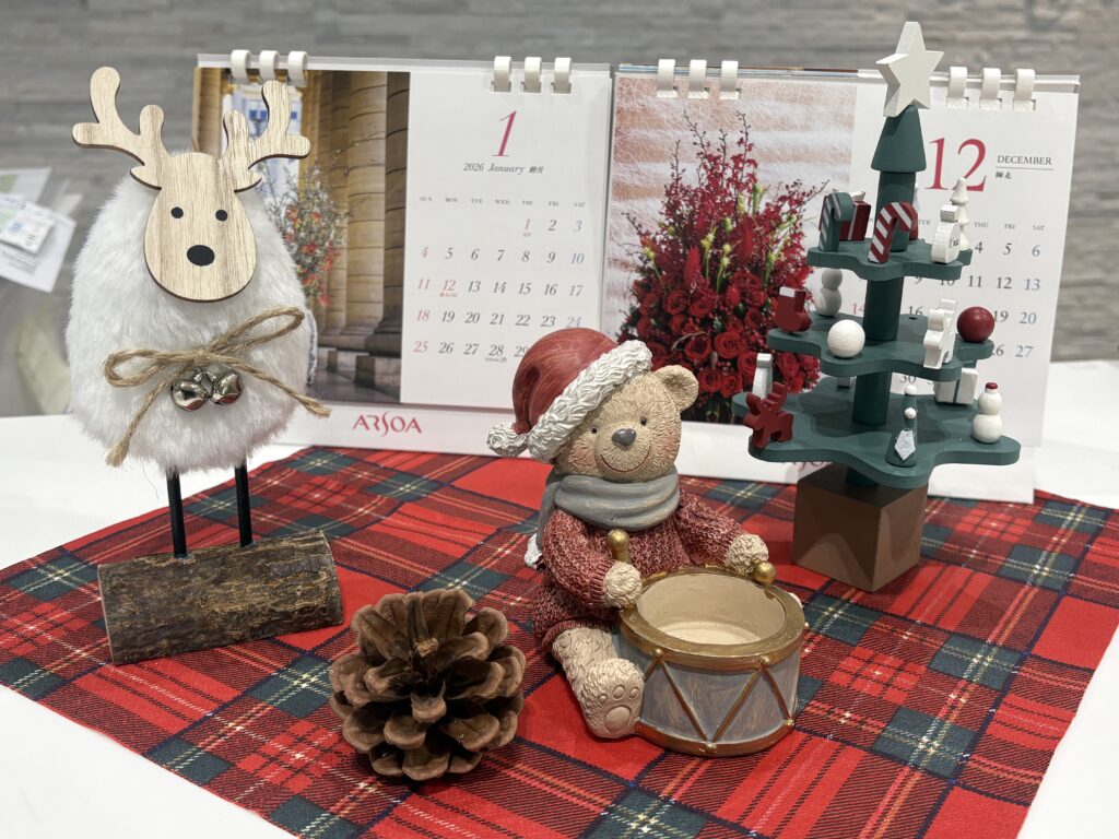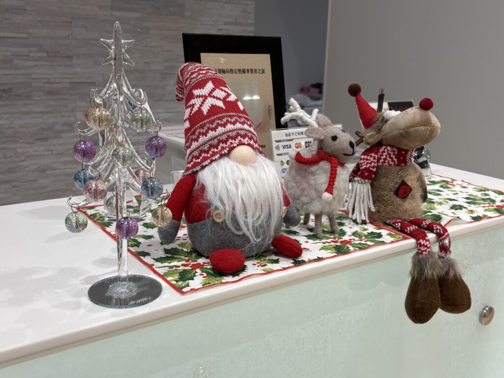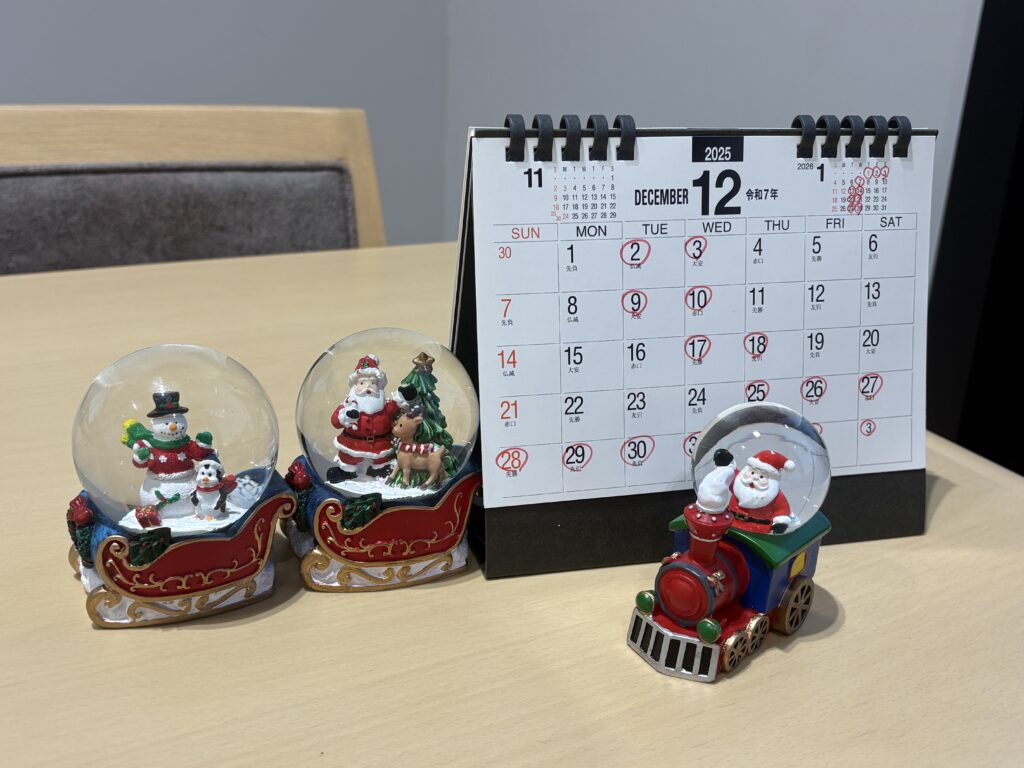 ショールーム内各テーブルにスノードーム置いてます⛄