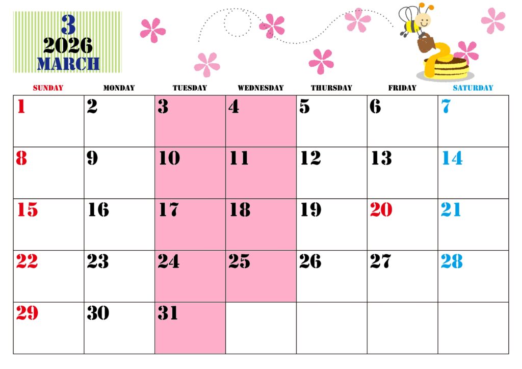 3月は通常通り、火曜日・水曜日が定休日です。
