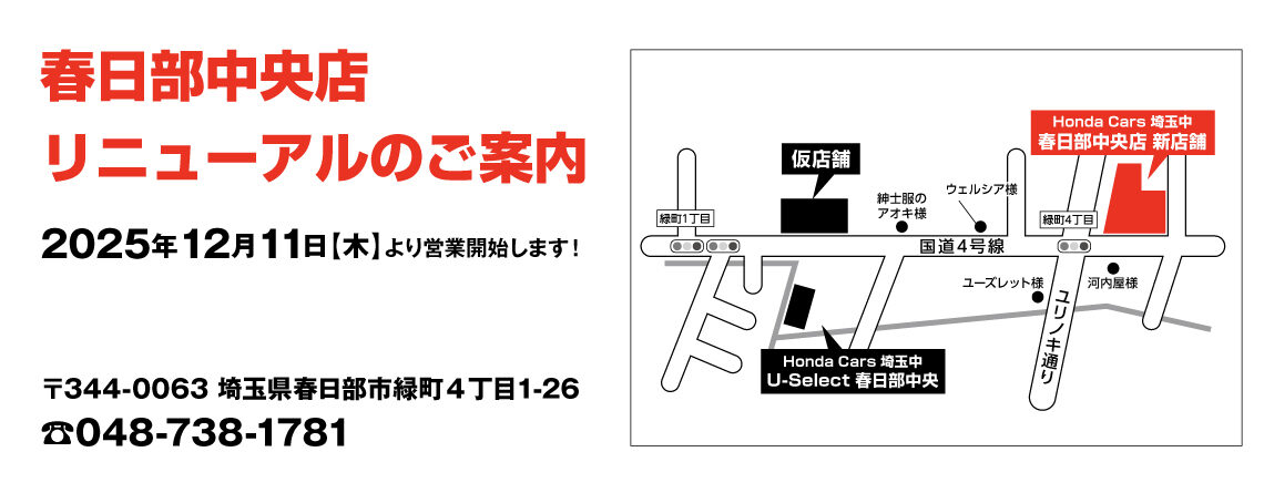 ホンダカーズ埼玉中 春日部中央店のホームページをご覧いただきまして誠にありがとうございます。